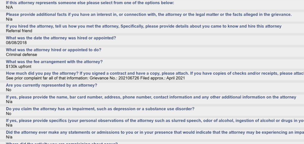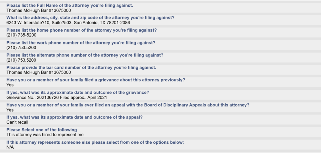 A grievance has been filed with the State Bar of Texas concerning matters related to prior representation.